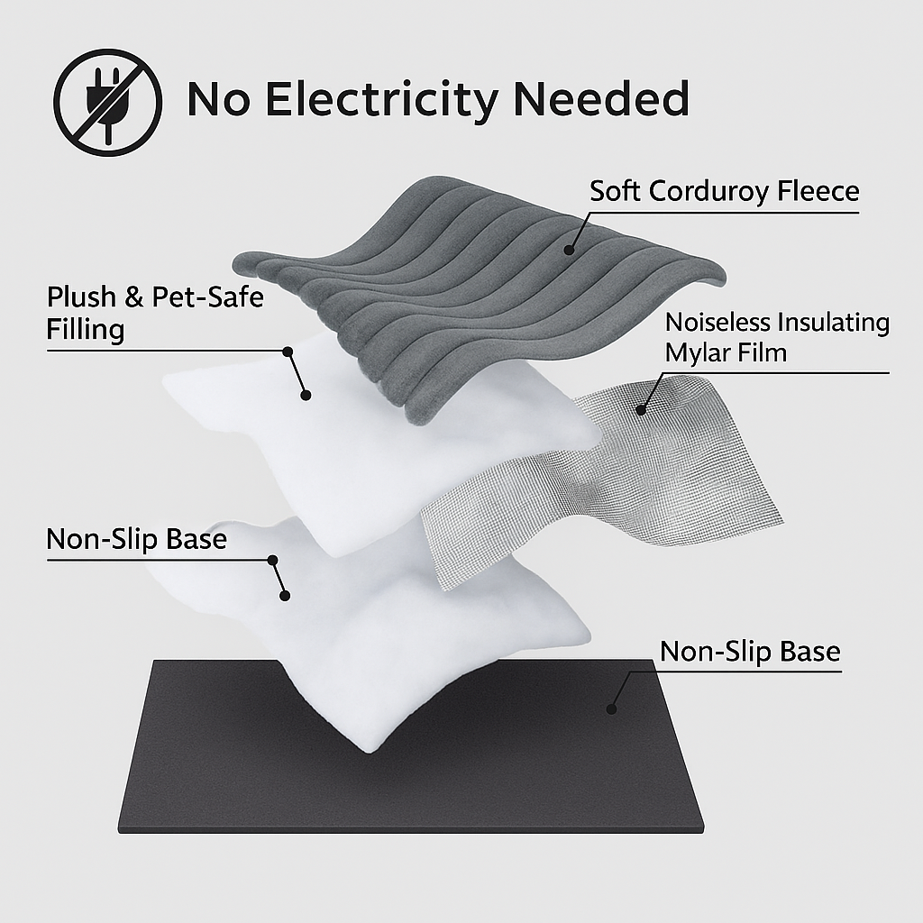 Our mission is to honor the pets who’ve given us a lifetime of love. We design gentle, self-heating beds that ease discomfort for seniors and arthritic pets, so every nap can be warm, supported, and full of peace.